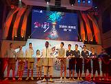 (徐天佑带领的蓝队选手在舞台上歌舞推介。) ...