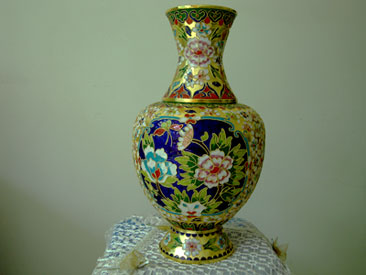 金地花丝景泰蓝花瓶不同与其它的景泰蓝花瓶,它是在铜胎外表的图画用细铜丝拧出的花丝来围成整体图画的大体边线,然后在由丝形成的空格中镶嵌珐琅釉料,而其它的背景的地方不像其它景泰蓝一样用大蓝或是大红等釉料填充,而是进行留白,然后等鎏金的时候这些地方也会上金,因此金地花丝景泰蓝花瓶则更能突显出金碧辉煌的特色,更能给人以视觉冲击力。