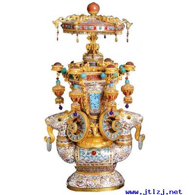 珐琅器还有个很形象的名字“金属胎珐琅器”(古代景泰蓝的制作过程),因为珐琅的胎料绝大多数是铜,也有少数是金或银,釉料为珐琅。它集金属加工、珐琅料制作、绘画、雕刻、镶嵌、镀金、玻璃熔炼等工艺于一体,古朴典雅,金碧辉煌,精美华贵,具有鲜明的艺术风格和丰富的文化内涵,几乎每一件作品都布满寓意吉祥的纹饰。