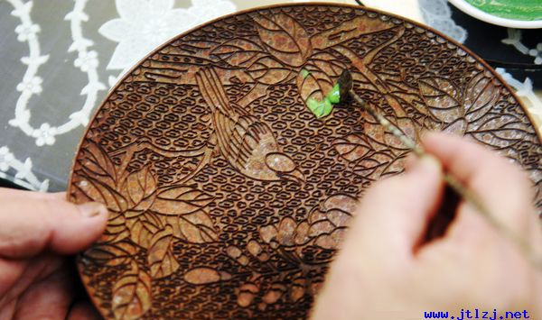 解说:景泰蓝的制作工序非常复杂,仅仅其中几项较大的工序就有设计、制胎、掐丝、点蓝、烧蓝、磨光、镀金六道工序,一个寻常的景泰蓝花瓶也要几十人经手才能真正完成。